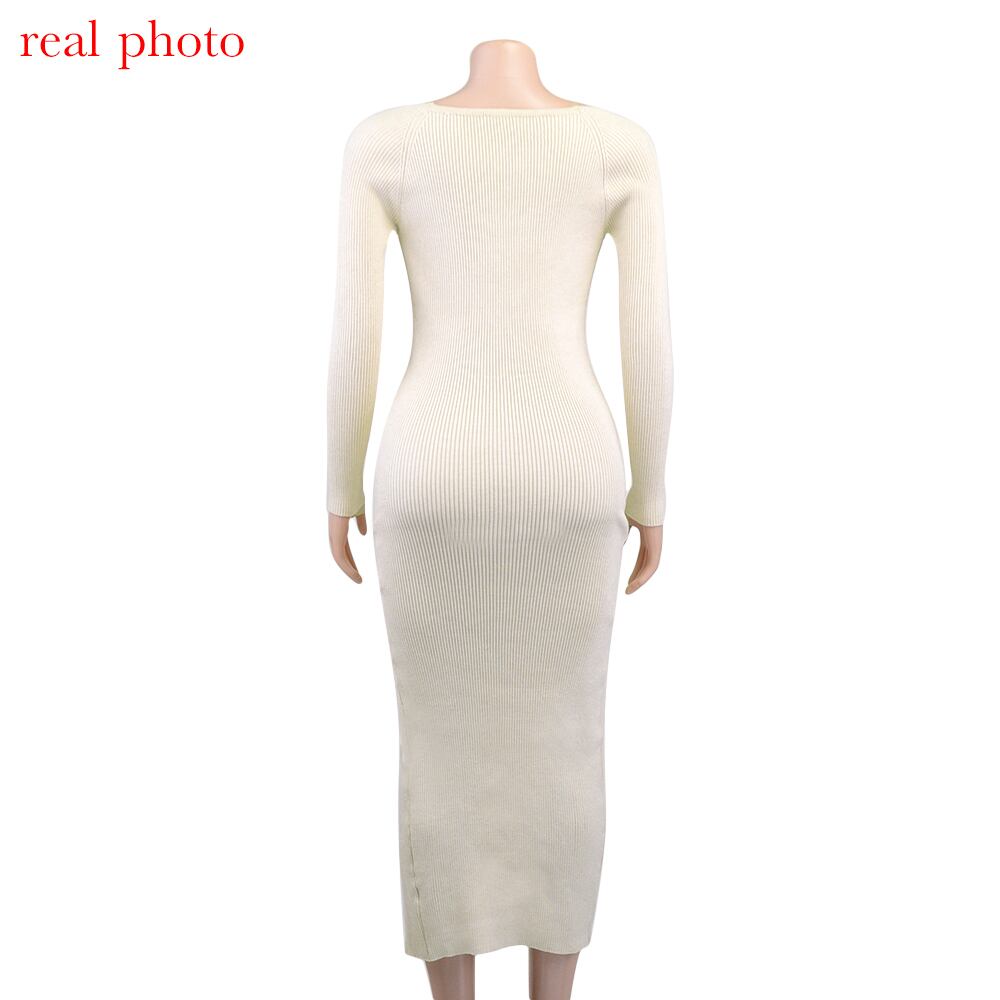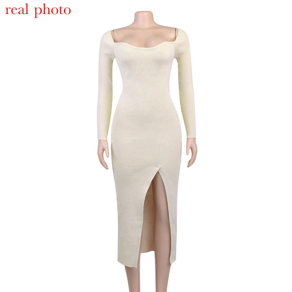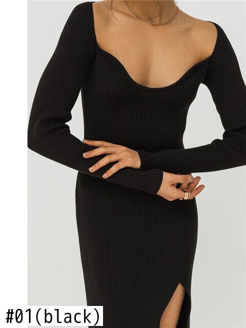 送料無料 暗号スクエアカラーリブニットスリットドレス女性秋冬衣装セクシーなミディドレス服 オータム 秋物 ウィンター 冬物 スクウェア AE123565588723024064487