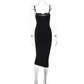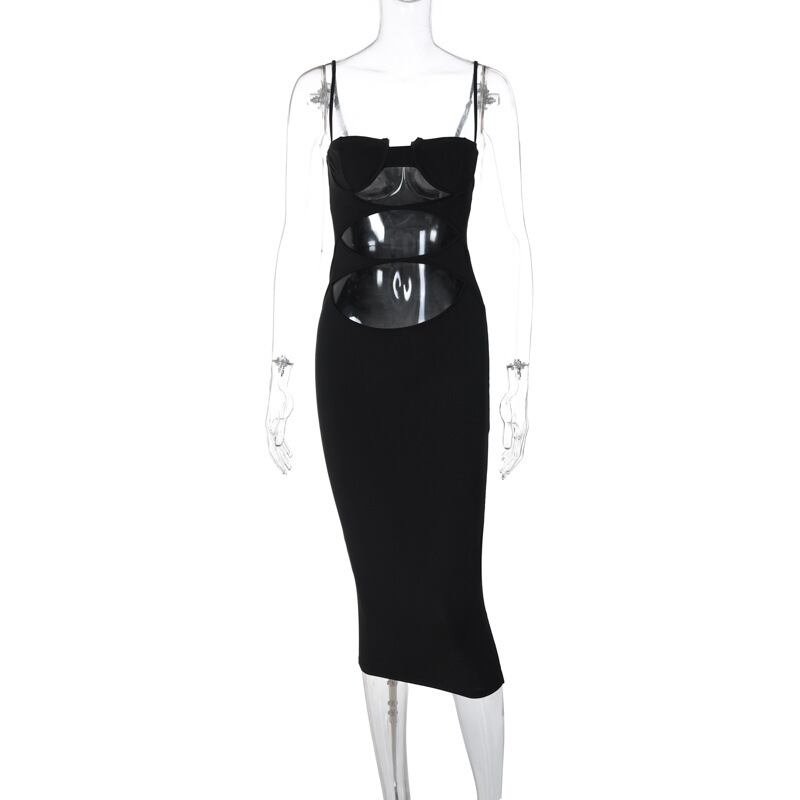送料無料 暗号セクシーなカットアウトバックレスストラップミディドレス衣装女性クラブパーティースリップボディコンドレス Vestido 夏 サマー 夏物 AE12356558875778746088