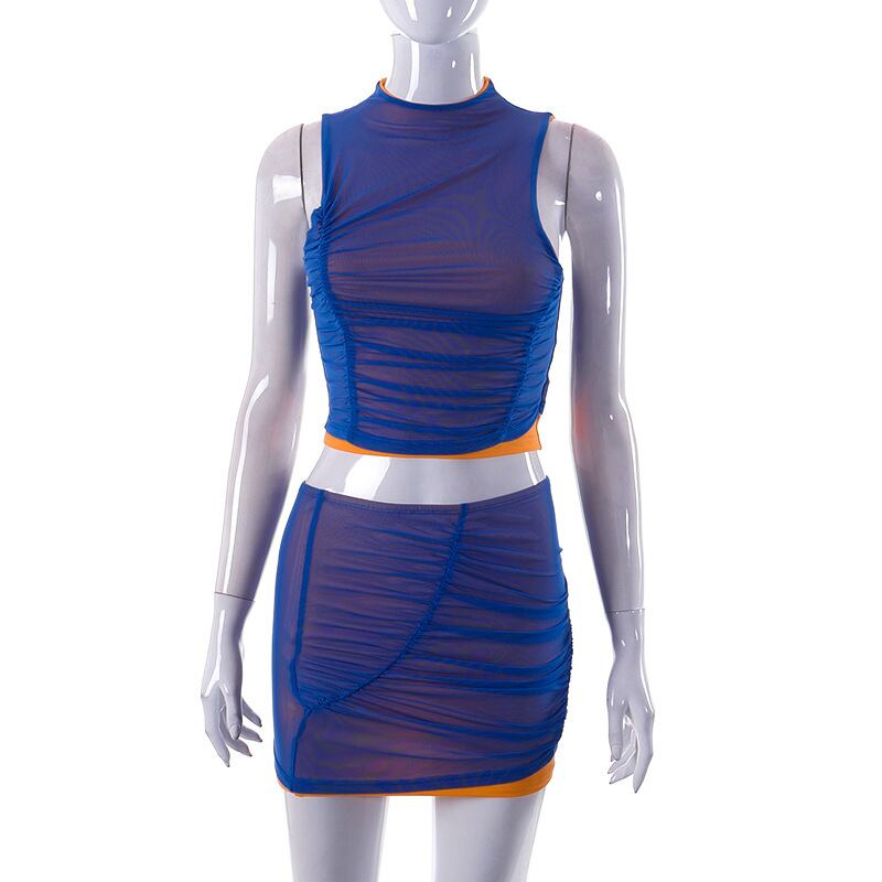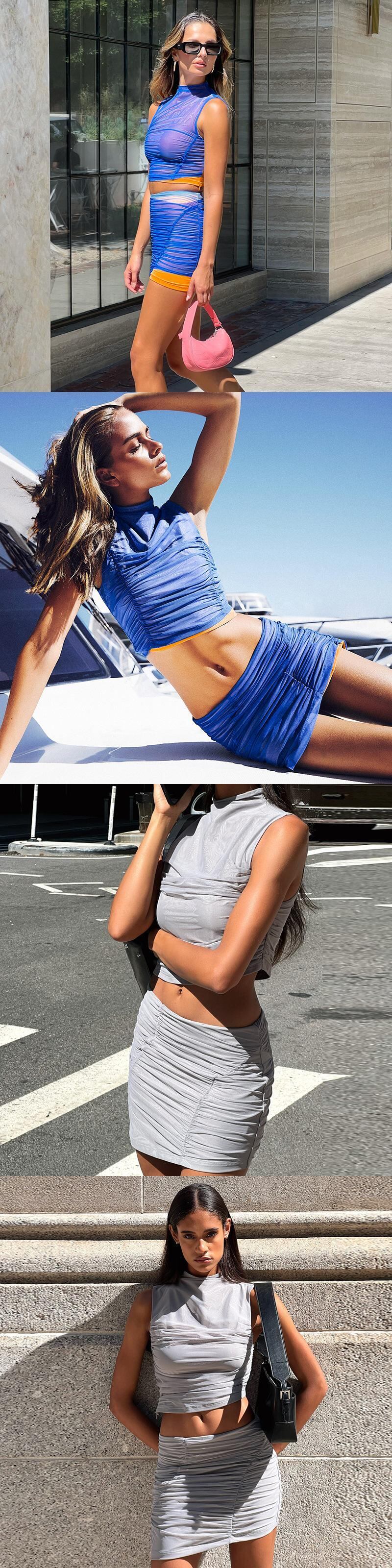 送料無料 暗号シャーリングノースリーブトップとスカート2点セットレディース衣装サマークラブパーティーマッチングセット 夏物 AE12356558874749108181