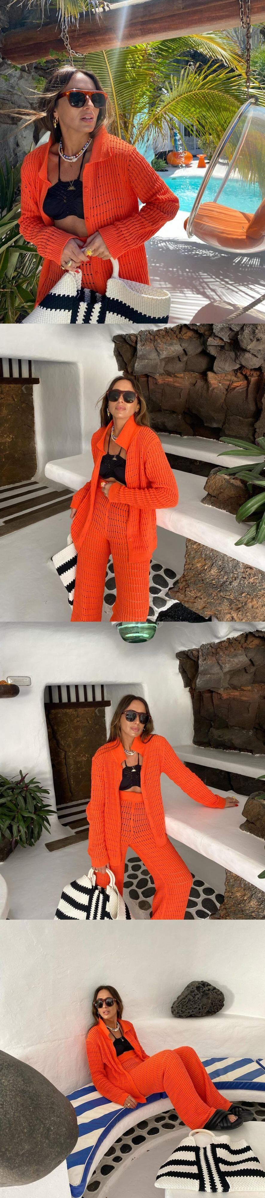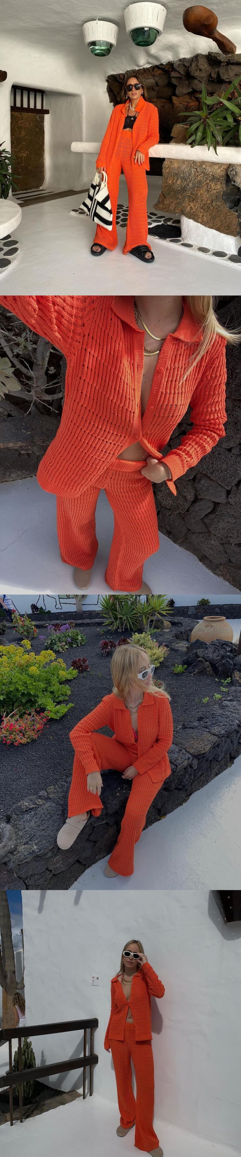 送料無料 暗号秋冬ニットスーツシャツとパンツツーピースセットレディース衣装ホリデーマッチングセット服 オータム 秋物 ウィンター 冬物 AE123565588745334239101