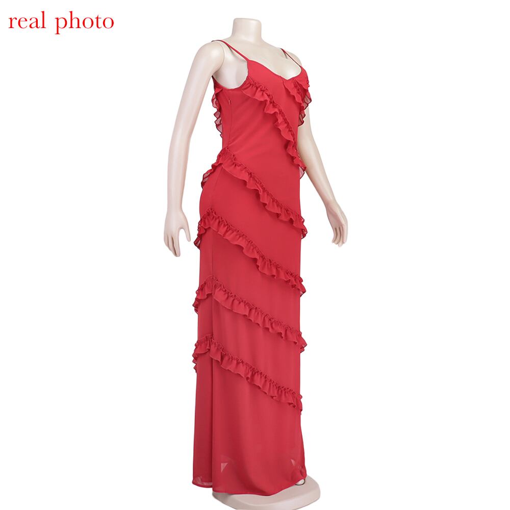 送料無料 暗号スパゲッティストラップドレープマキシドレス女性フリルセクシーなノースリーブ背中の開いたサンドレスパーティークラブ服 AE123565588712923871334