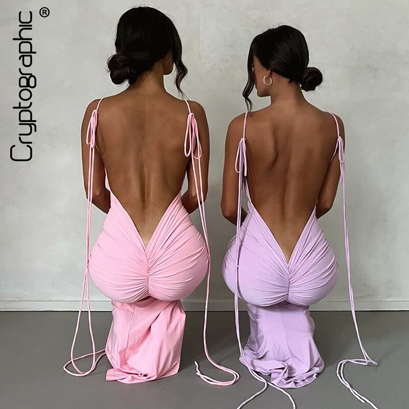 送料無料 暗号スパゲッティストラップセクシーな背中の開いたマキシドレス衣装女性の誕生日 Vestido サマークラブパーティーシャーリングドレス 夏物 AE123565588789043677375