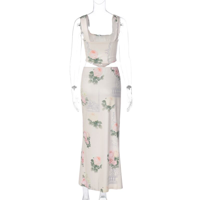 送料無料 暗号コテージコア花柄 2 ピーススプリットシャーリングドレスセットセクシーなコルセットトップとスカート夏フェアリーコアグランジ サマー 夏物 AE123565588731050862781 | 女性の為の通販サイト-fashion navi