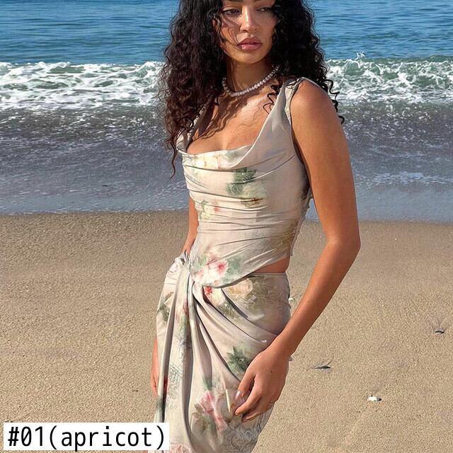 送料無料 暗号コテージコア花柄 2 ピーススプリットシャーリングドレスセットセクシーなコルセットトップとスカート夏フェアリーコアグランジ サマー 夏物 AE123565588731050862781