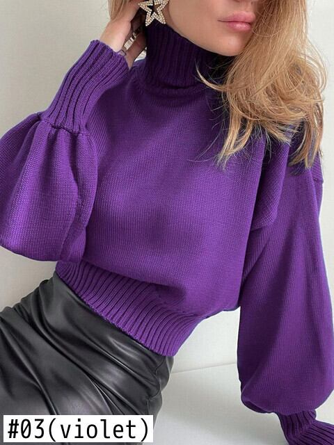送料無料 暗号秋冬ニットパフスリーブセーター女性プルオーバータートルネックセータートップ衣装服 ウィンター 冬物 AE123565588715966917077