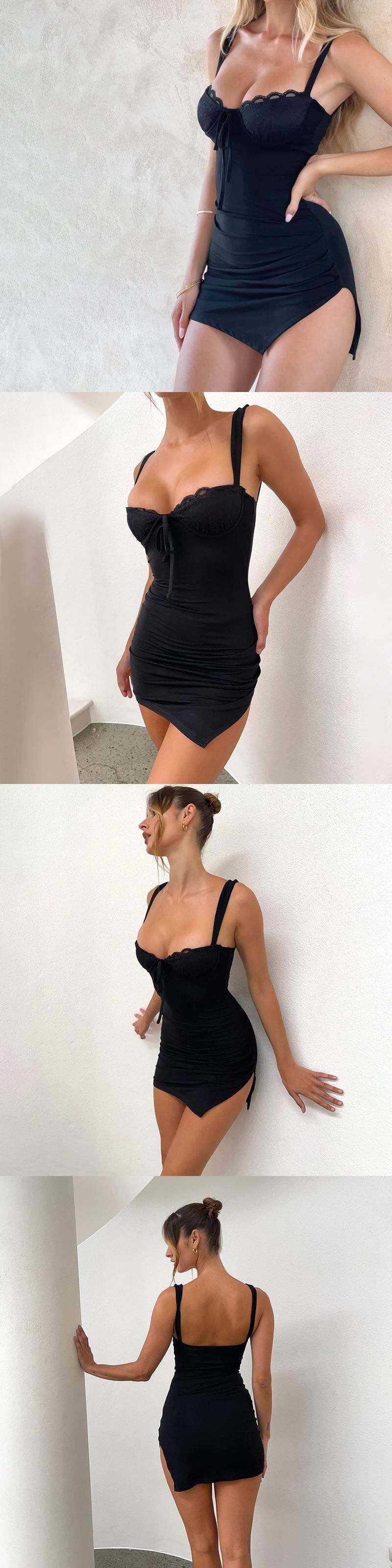 送料無料 暗号夏レーススプリットミニドレス衣装女性 Vestido ノースリーブスリップドレスボディコンパーティークラブウェア サマー 夏物 AE123565588729145384423