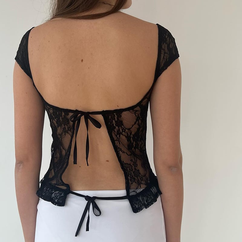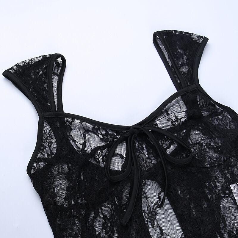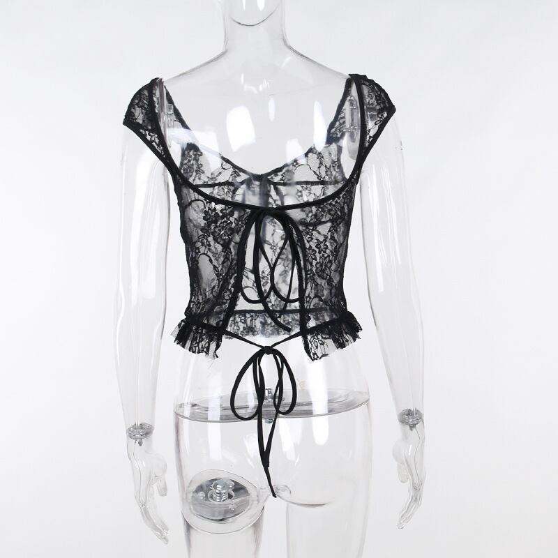 送料無料 暗号化フェアリーコア Y2K セクシーな背中の開いたレース透明クロップトップスレイブフェスティバルクラブパーティーノースリーブトップストリート服 AE12356558873362863178