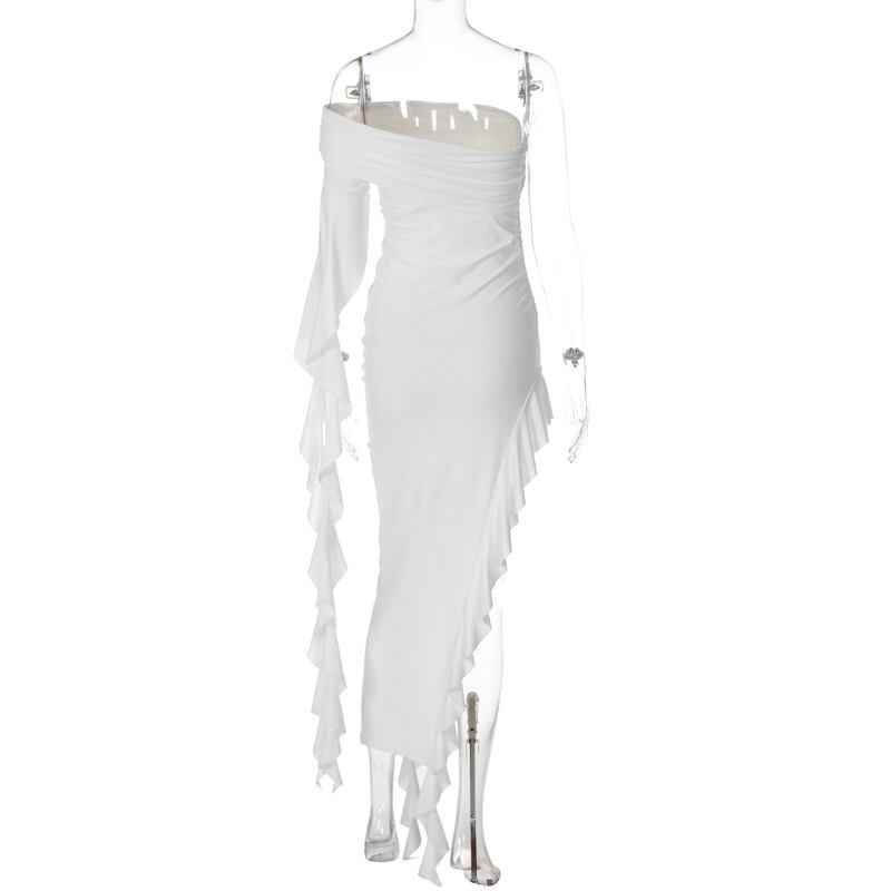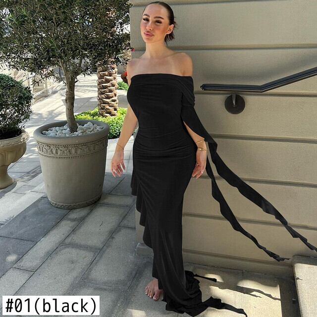 送料無料 暗号オフショルダーフリルマキシドレス衣装女性の夏のパーティーホリデースリットセクシーなノースリーブ背中の開いたドレス サマー 夏物 AE123565588736465357306