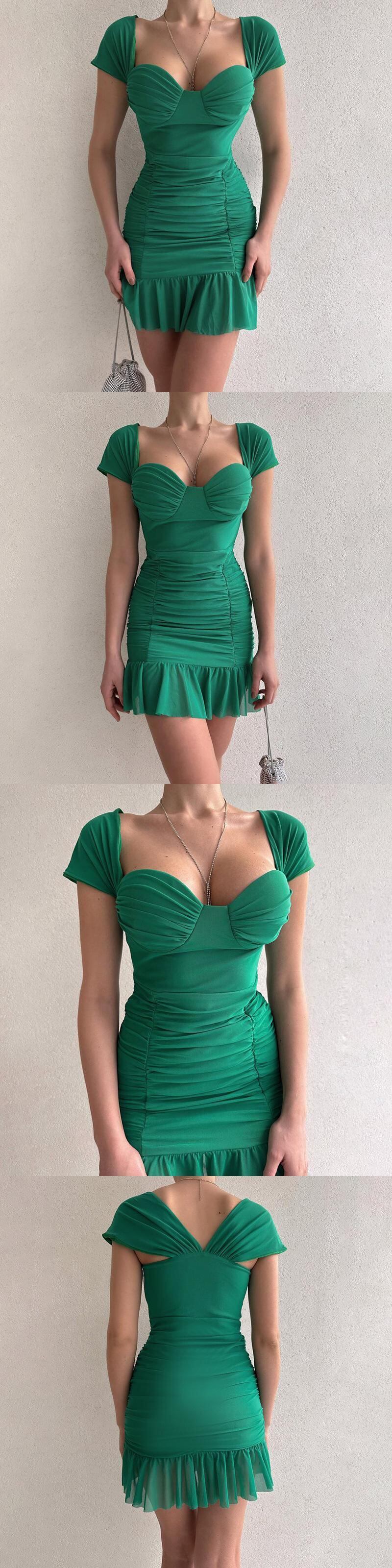 送料無料 暗号スクエアカラー半袖メッシュセクシーな背中の開いたミニドレス衣装女性フリルシャーリングドレス夏 ショート ハーフスリーブ サマー 夏物 スクウェア AE123565588730393511370