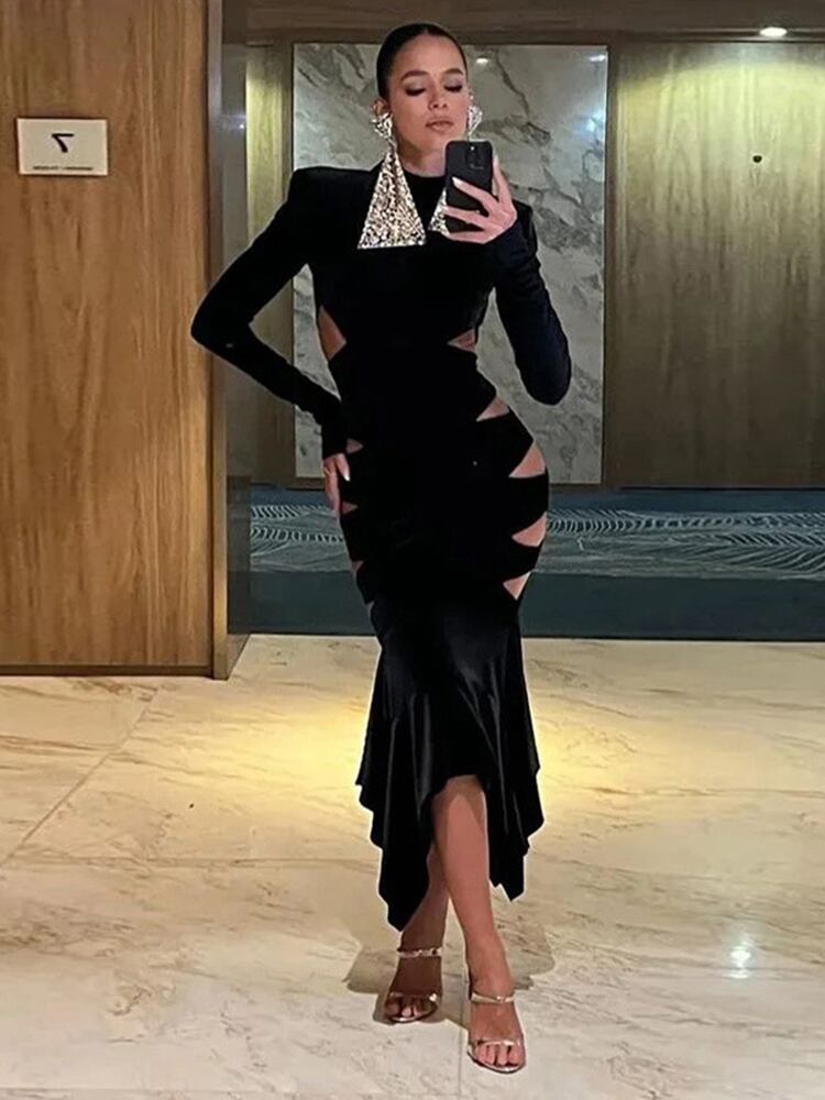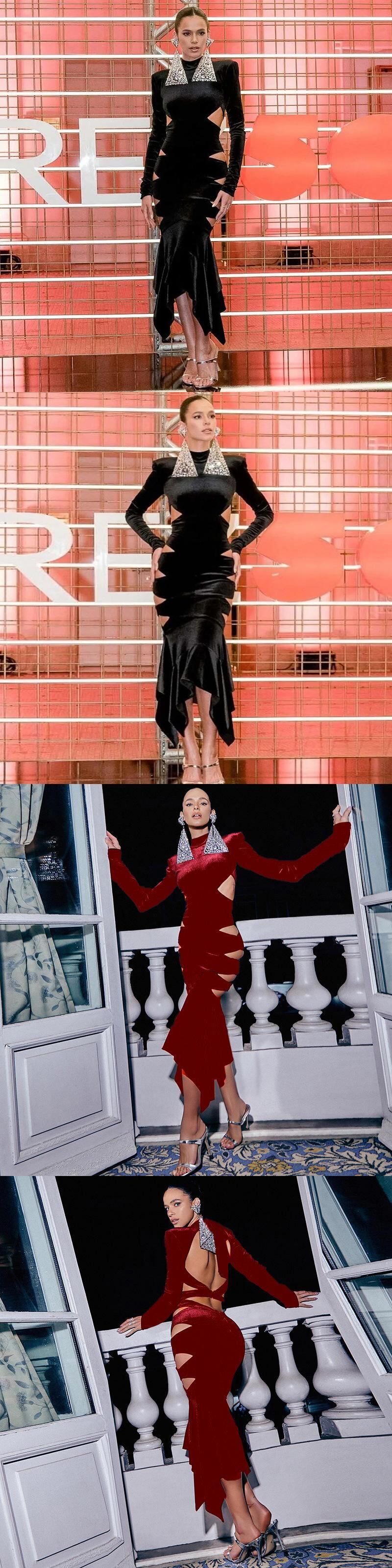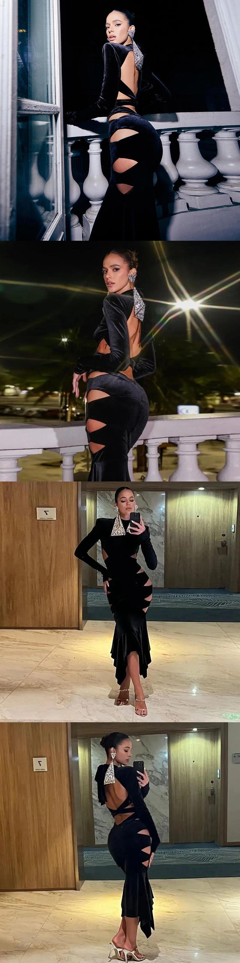 送料無料 暗号ベルベットセクシーな背中の開いたカットアウトマキシドレス女性ガウンパーティークラブマーメイドドレス Vestido 2022 秋服 オータム 秋物 AE123565588790904649996