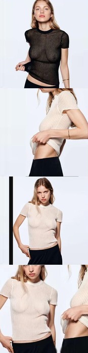 送料無料 暗号ストライプニットシースルーレディーストップス衣装夏半袖ラウンドネックトップスストリート ショート ハーフスリーブ サマー 夏物 Oネック AE123565588790129283995 | 女性の為の通販サイト-fashion navi