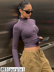 送料無料 暗号シームレスタートルネックトップス女性長袖ジッパートップ Tシャツクロップドスリムストリート服 ロング AE123565588715607068170 | 女性の為の通販サイト-fashion navi