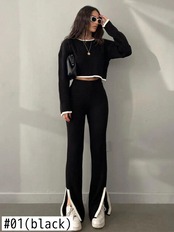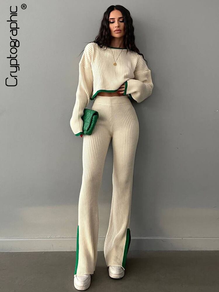 送料無料 暗号ニットセーター 2 点セット衣装女性トップとパンツスリットセットマッチングセット服 AE123565588729924296760