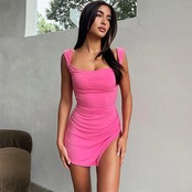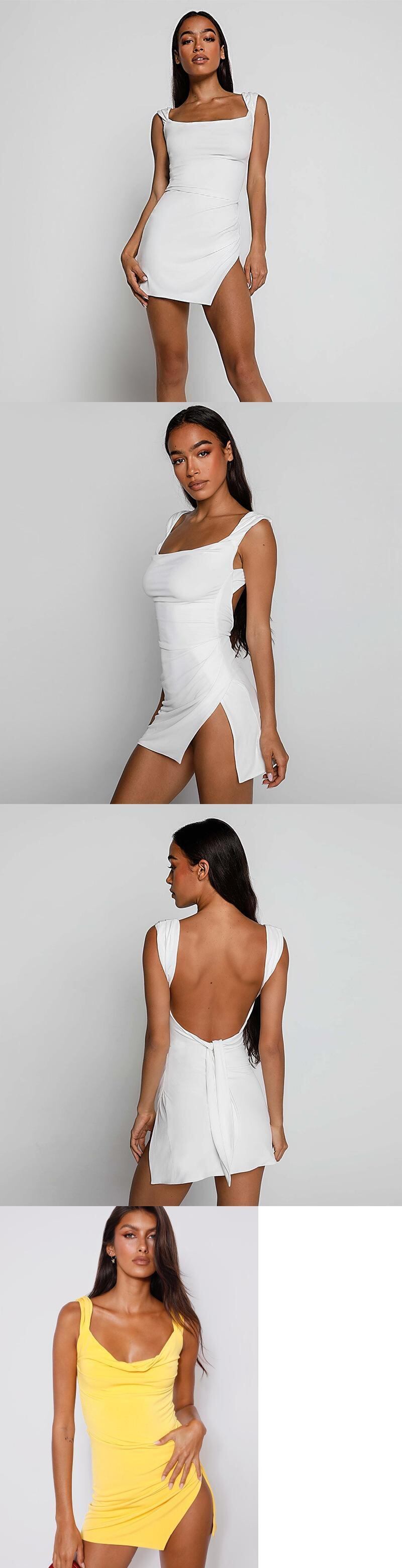 送料無料 暗号バックレススリットミニドレス夏服女性クラブパーティーノースリーブホットセクシーなドレープドレス Vestido サマー 夏物 AE123565588710345590457