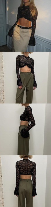 送料無料 暗号レース薄手のフレアスリーブ Tシャツクロップドトップス女性の衣装ストリートスリムトップス Tシャツ服 AE123565588769618815642 | 女性の為の通販サイト-fashion navi
