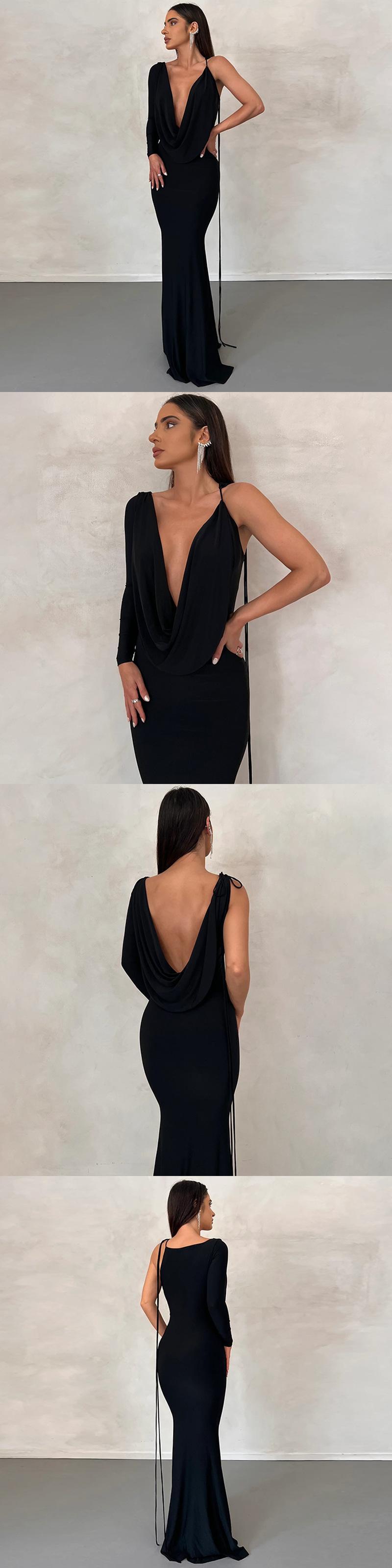 送料無料 暗号セクシーな背中の開いたスリップドレープガウンマキシドレス衣装女性パーティークラブドレスローブ Vestido 固体服 ソリッドカラー AE123565588742020699906
