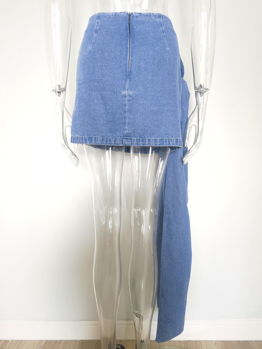 送料無料 暗号ヴィンテージブルーデニムミニスカートの女性の衣装花アップリケスカートボトムスシックなストリート服 花柄 ビンテージ AE123565588720296819162
