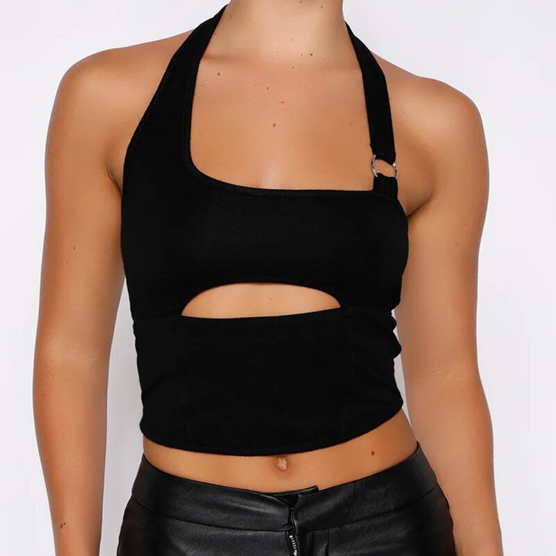 送料無料 暗号不規則なカットアウトホットセクシーな背中の開いたホルタークロップトップス夏Y2Kスリムタンクトップクロップドシックストリート サマー 夏物 AE123565588786919255675