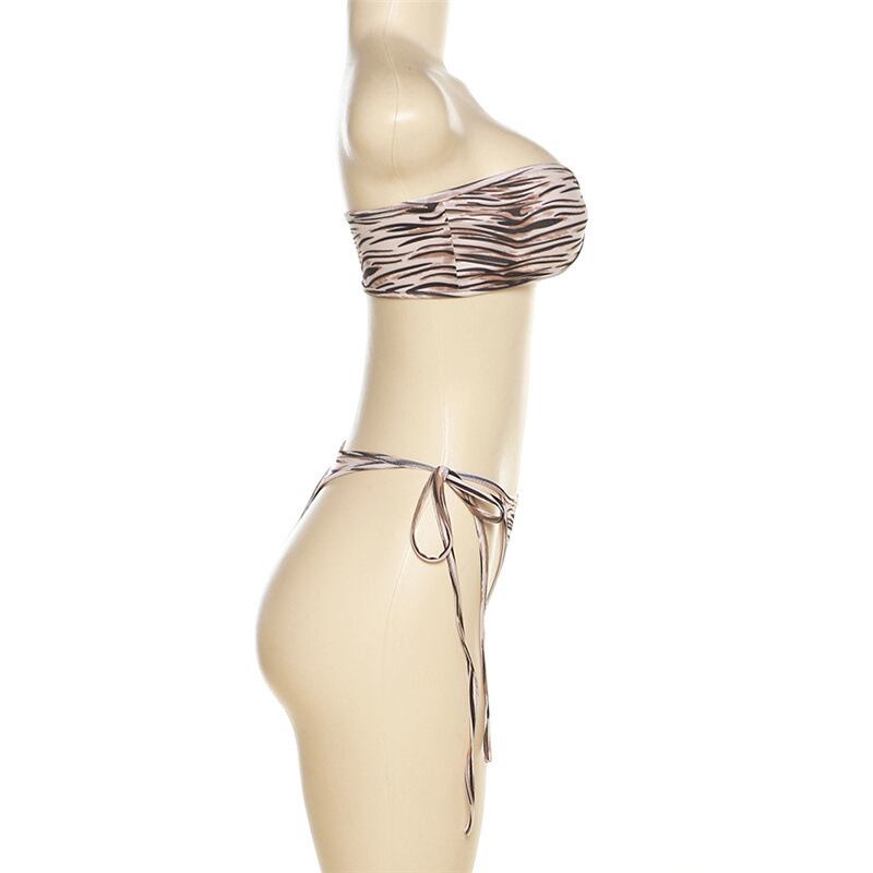 送料無料 暗号夏アニマルプリントビーチウェアビキニツーピースセット衣装ホリデーホットセクシーなストラップレス水着水着 サマー 夏物 AE123565588716308186892