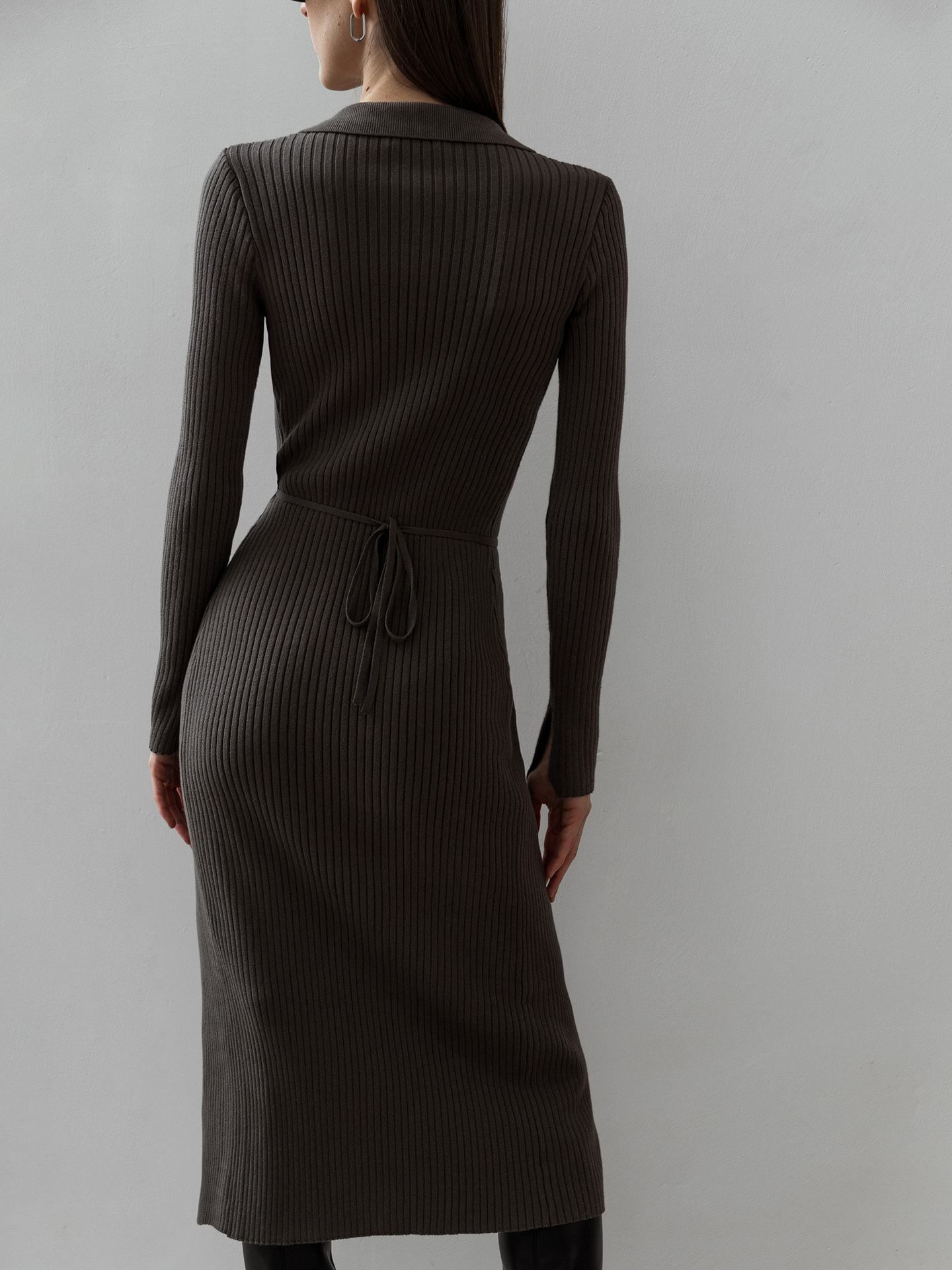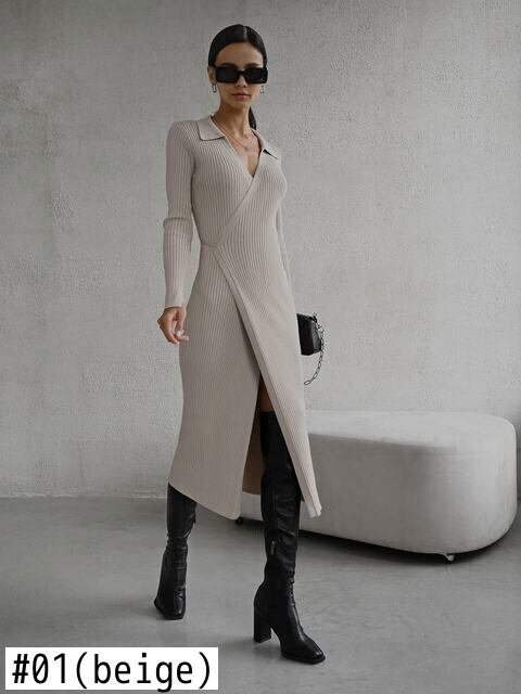 送料無料 暗号コットンニットミディドレス女性長袖ラップタイアップセータードレスパーティークラブ秋冬服 ロング オータム 秋物 ウィンター 冬物 AE123565588786163133762