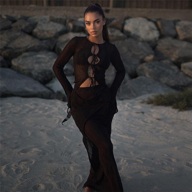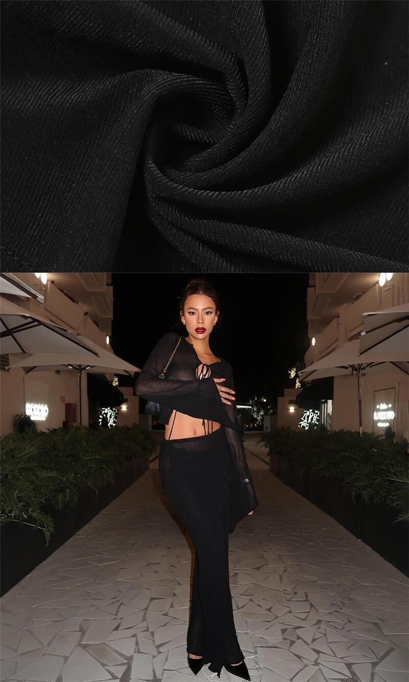 送料無料 暗号夏シースルーラップ 2 点セットフレアスリーブセクシーなネクタイフロントトップとスカートニットコーデセット衣装 サマー 夏物 AE12356558877514474080