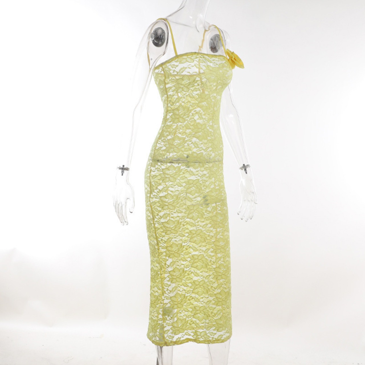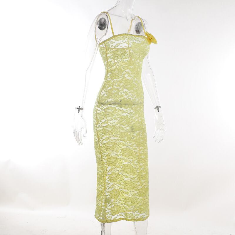 送料無料 暗号花アップリケシアーレーススリップマキシドレスクラブパーティー衣装女性ノースリーブ夏のセクシーなドレススリット サマー 夏物 花柄 AE123565588781193343603