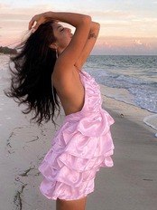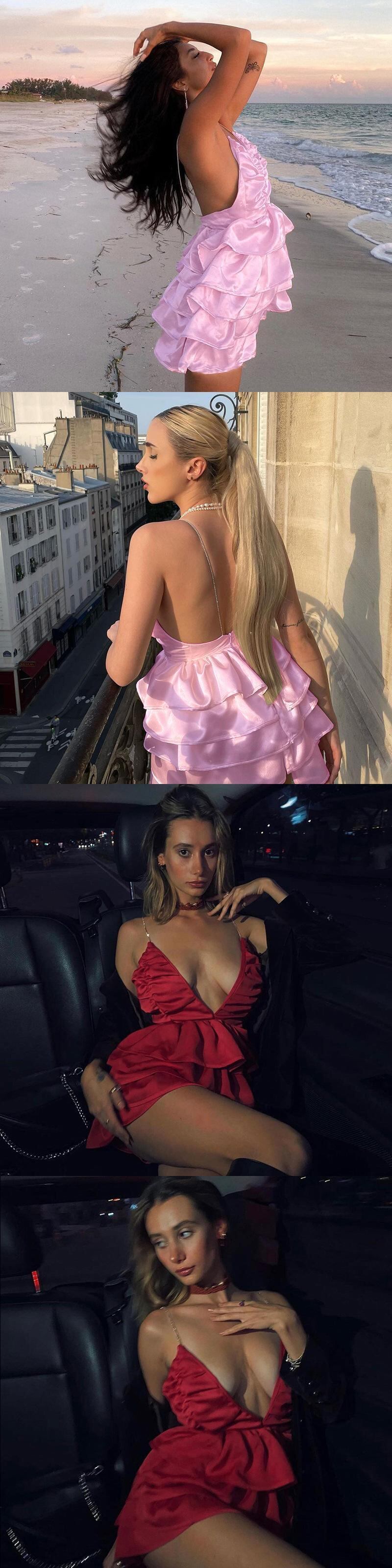 送料無料 暗号セクシーな背中の開いた誕生日ミニレイヤードドレス女性ウエディングイブニングサマースリップティアードドレス Vestidos Y2K レッド 夏物 AE123565588734929680450