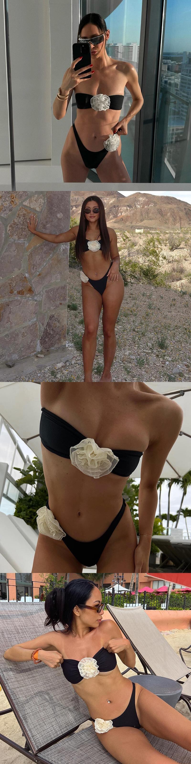 送料無料 暗号花柄アップリケ セクシー ストラップレス ビキニ 2 点セット 衣装 水着 ビーチウェア 水着 ホリデー 夏 サマー 夏物 AE123565588795734610852