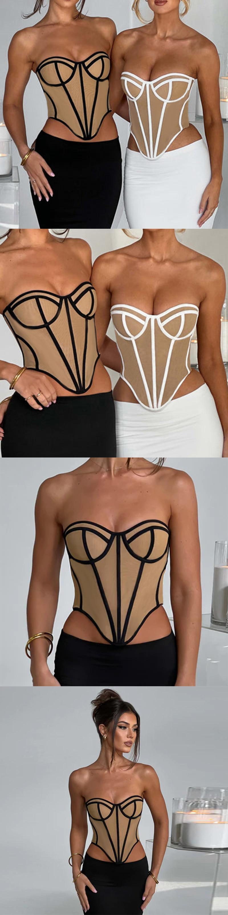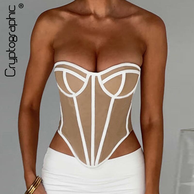 送料無料 暗号化セクシーな背中の開いたコルセットトップス女性サマークラブパーティーノースリーブビスチェクロップトップスリム服 夏物 AE123565588781083742042