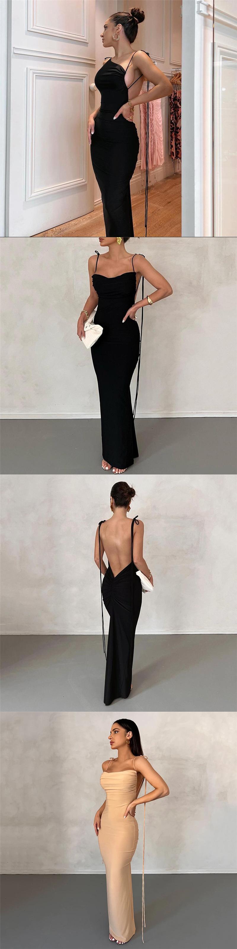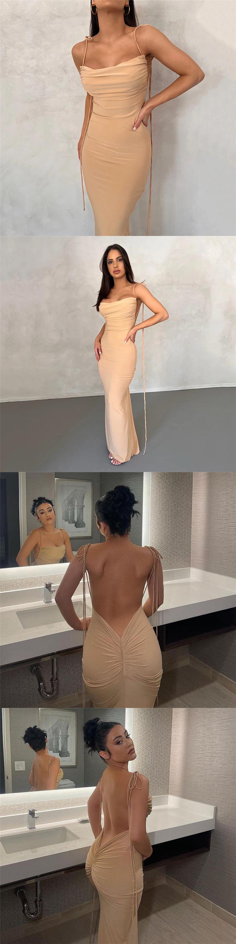 送料無料 暗号セクシーな背中の開いたドレープマキシドレス女性の夏の衣装ガウンパーティーノースリーブニットシャーリングロングドレス サマー 夏物 AE123565588745836648619