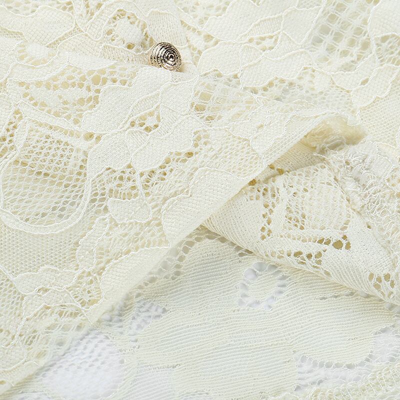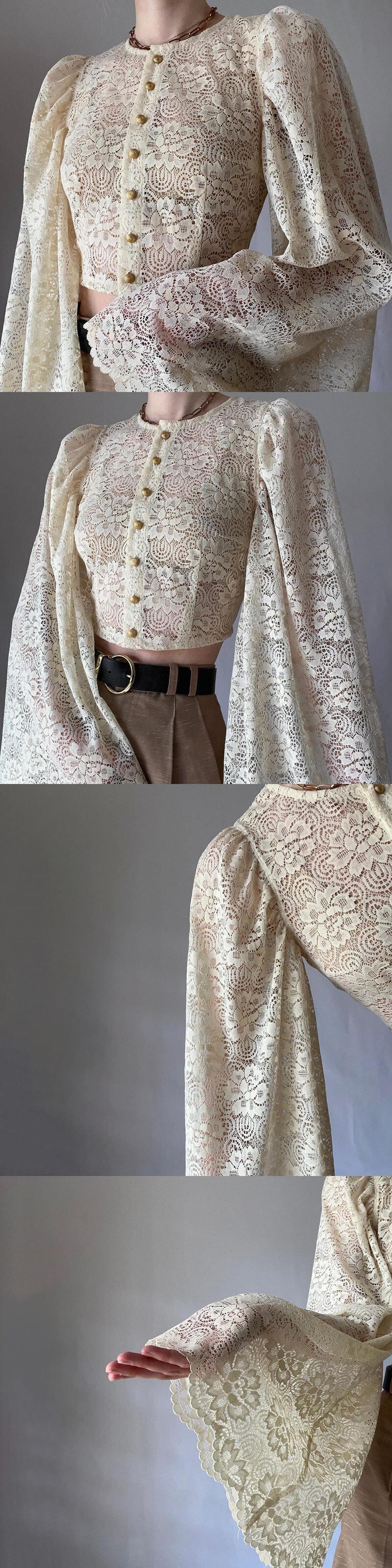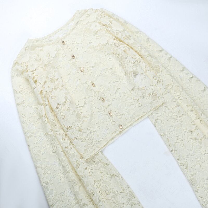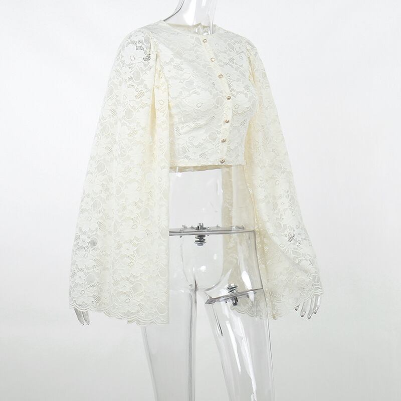 送料無料 暗号シングルブレストレース中空アウトシャツ女性服フレアスリーブトップスブラウスシャツカーディガン AE123565588743147463415