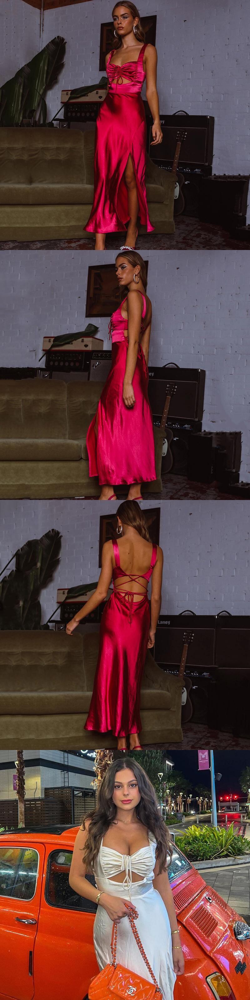 送料無料 暗号包帯セクシーな背中の開いたサテンマキシドレス衣装女性クラブパーティードレス夏シャーリングスリットロングドレス Vestido サマー 夏物 AE123565588731714392961