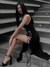 送料無料 暗号ホルターセクシーな包帯ウエストスリットマキシドレス衣装女性ナイトクラブパーティーノースリーブドレス夏 2023 サマー 夏物 AE123565588787178427130
