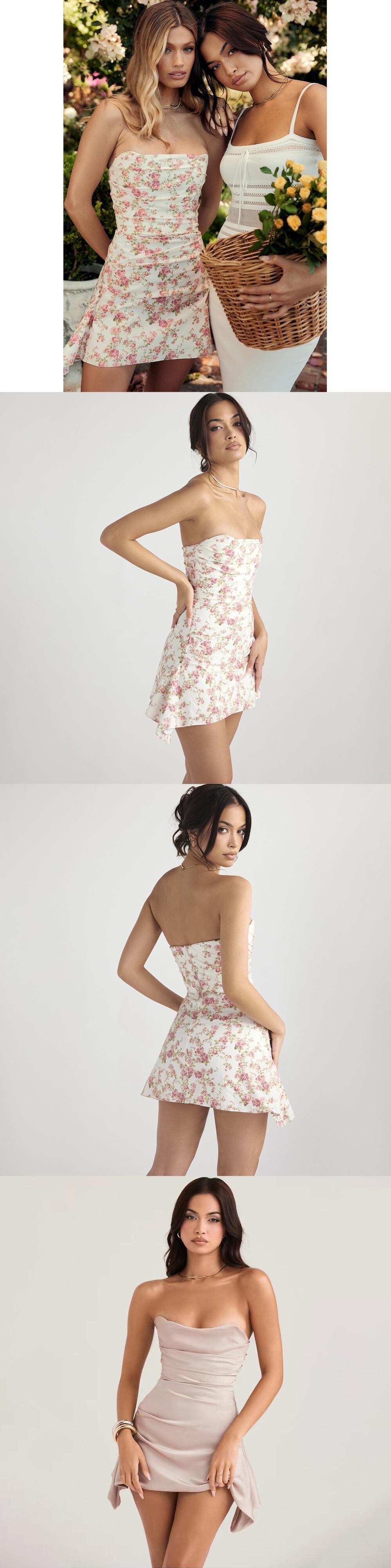 送料無料 暗号セクシーなストラップレスドレープコルセットドレス衣装女性パーティークラブ花柄バックレスミニドレス服 AE123565588743657144373
