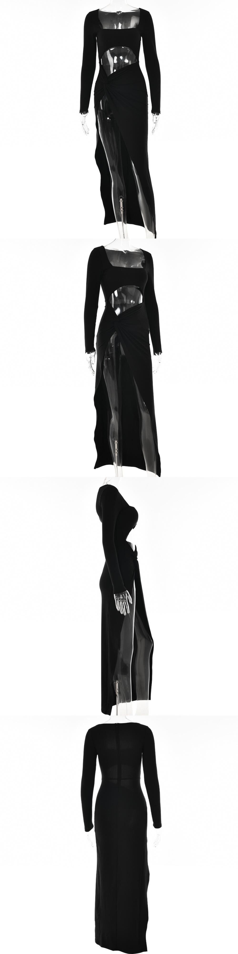送料無料 暗号長袖ライズスリットマキシドレスレディースカットアウトシャーリングツイストノットクラブパーティードレスガウン ロング AE123565588710760458311