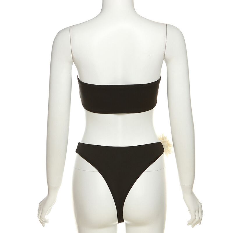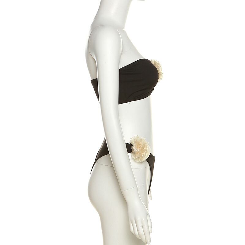 送料無料 暗号夏花柄ブラックホットセクシーなストラップレスビキニツーピースセット衣装ホリデー水着ビーチウェア水着 サマー 夏物 AE123565588739964087870
