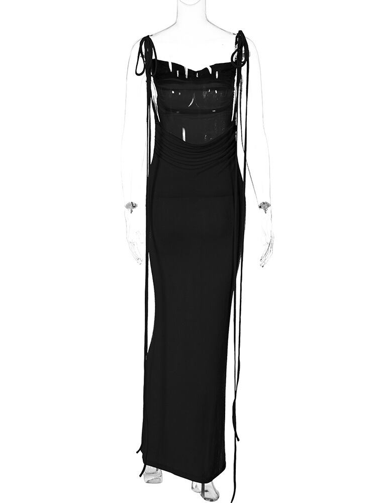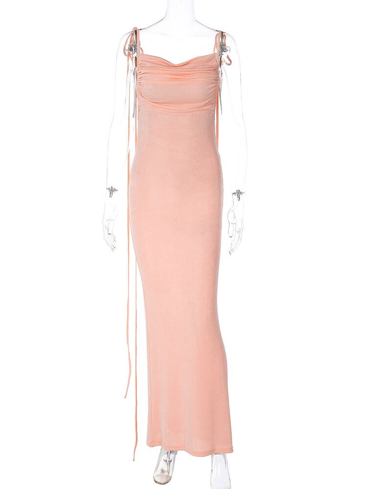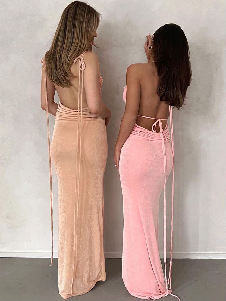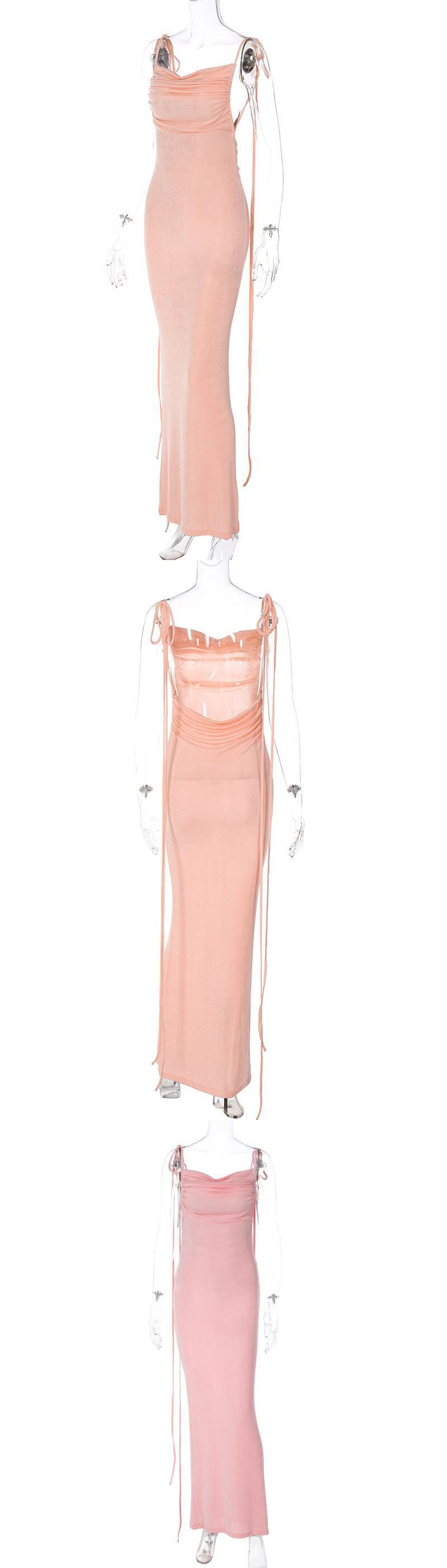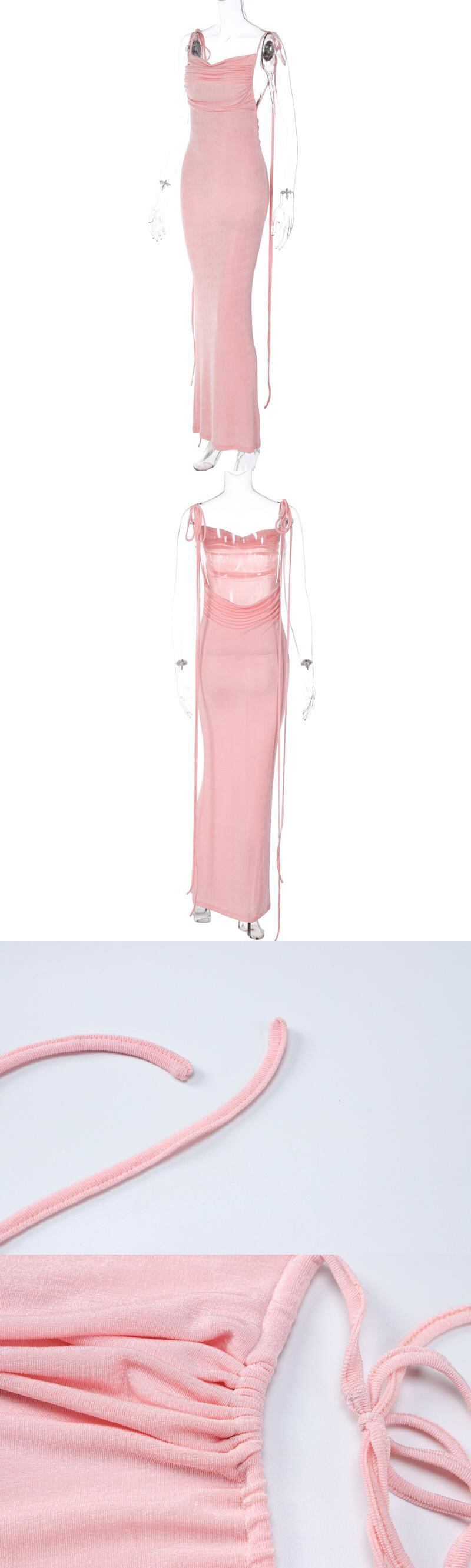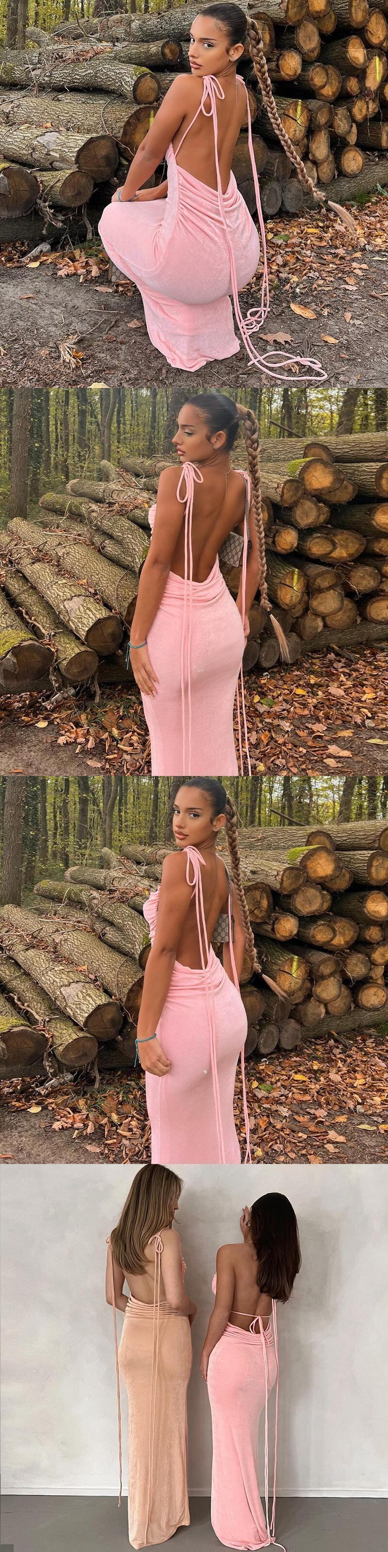 送料無料 暗号セクシーな背中の開いたドレープマキシドレス女性衣装クラブパーティーノースリーブニットシャーリングロングドレスvestido AE123565588716828286260