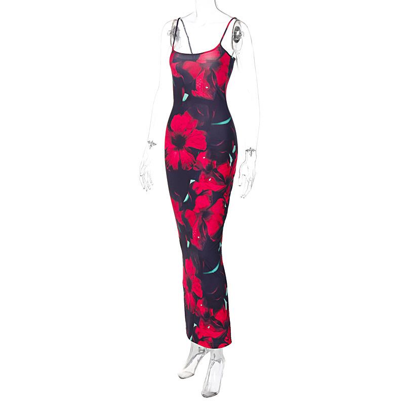 送料無料 暗号花柄ノースリーブマキシドレス 2023 夏休み衣装女性ドレス Vestido 服 サマー 夏物 AE123565588776913261981