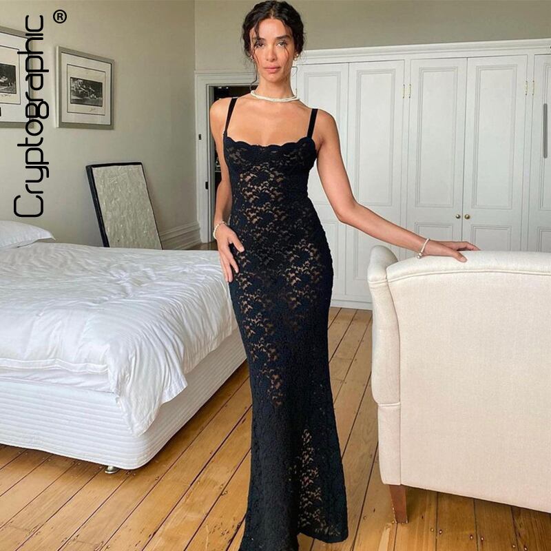 送料無料 暗号中空アウト透明レースマキシドレススプリット夏のセクシーな背中の開いたクラブパーティーノースリーブドレス衣装女性 サマー 夏物 AE123565588733959902823