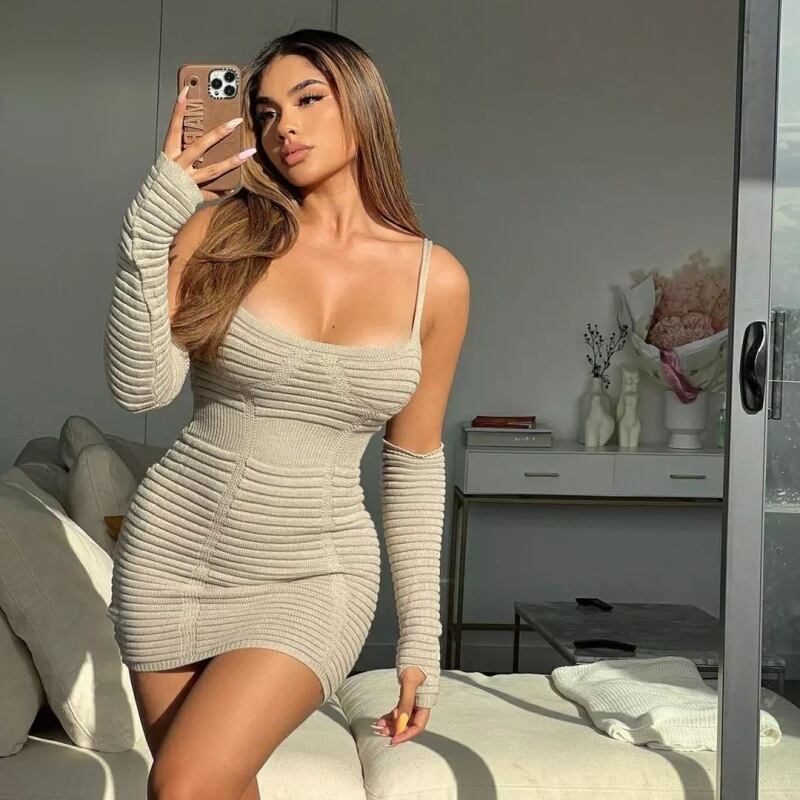 送料無料 暗号秋冬ニットボディコンミニドレス女性衣装セクシーなドレス Vestido パーティークラブ服 ウィンター 冬物 AE123565588770899246290
