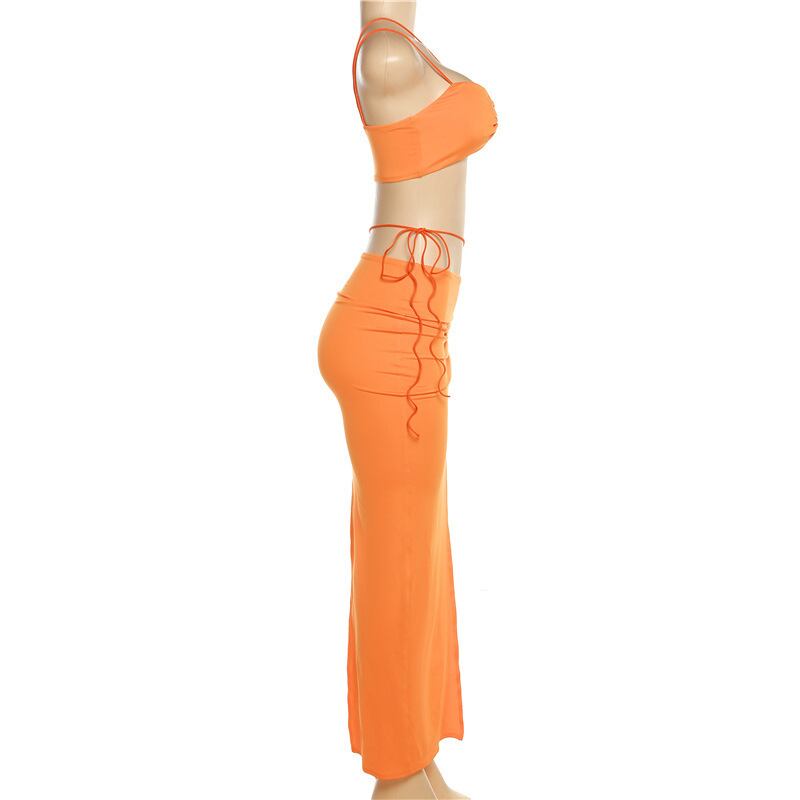 送料無料 暗号不規則な包帯ノースリーブドレスセットセクシーなトップとスカートの衣装女性サマークラブパーティーコーデセット服 夏物 AE12356558875042959646