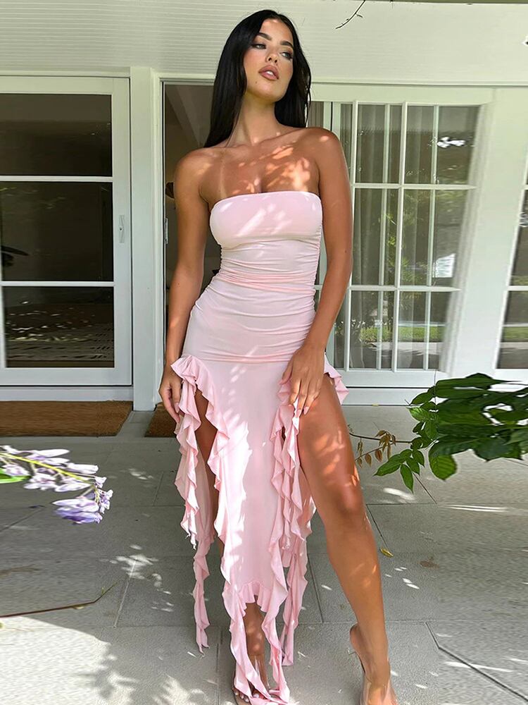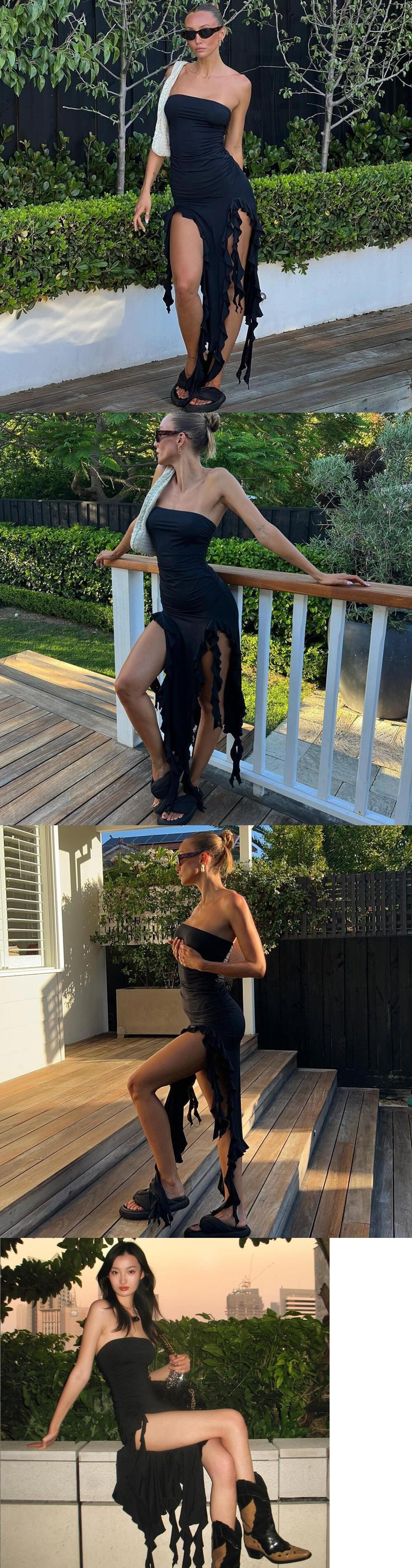 送料無料 暗号ストラップレスセクシーなミニドレス女性ノースリーブ背中の開いたフリンジドレスパーティークラブ Vestido 服 AE123565588716907944647