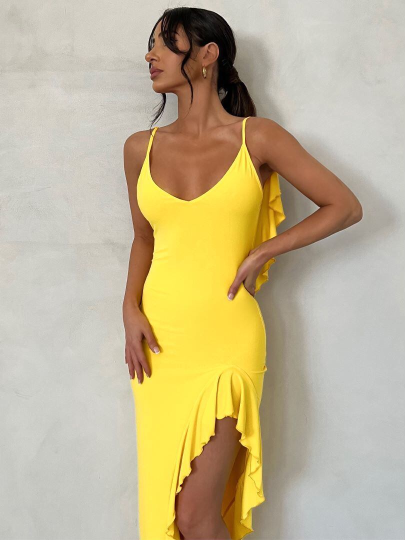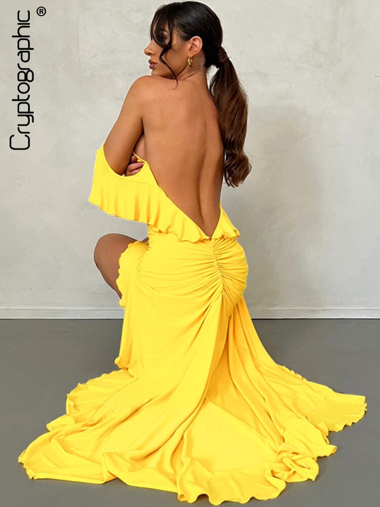 送料無料 暗号セクシーな背中の開いたフリルスリップマキシドレス衣装クラブパーティー夏 Vestido スリットドレスガウン服 サマー 夏物 AE123565588759817458913