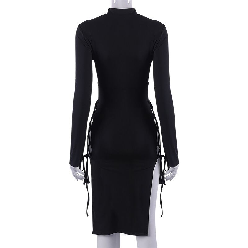 送料無料 暗号長袖ホットセクシーな包帯スリットミニドレス女性衣装クラブパーティー服女性のドレス Vestidos ロング AE123565588716309540536
