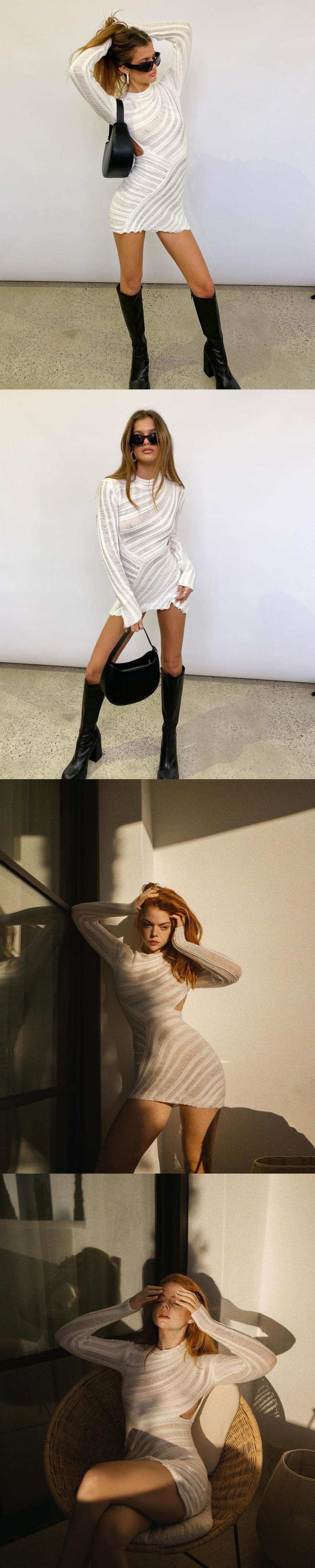 送料無料 暗号ニット中空アウトミニドレスの女性の衣装長袖セクシーなドレスパーティークラブ Vestido ホリデー ロング AE123565588795027398591
