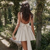 送料無料 暗号セクシーな背中の開いた弓ミニドレス衣装女性夏の誕生日 Vestido ホワイトノースリーブプリーツドレス リボン サマー 夏物 AE12356558872545024512