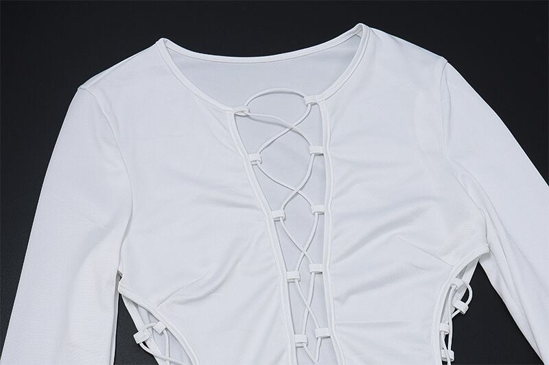 送料無料 暗号固体セクシーな包帯ボディスーツ女性スリム長袖トップスライズボディコンボディスーツワンピースロンパース服 ロング ソリッドカラー AE123565588787360368226