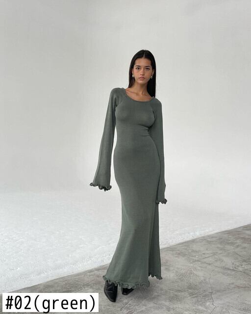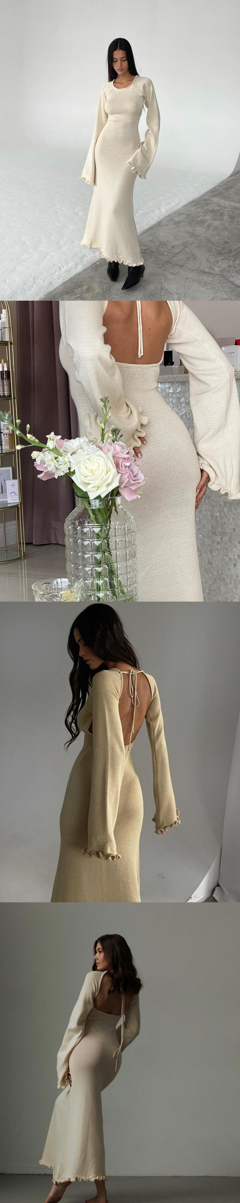 送料無料 暗号ニットセーターマキシドレス衣装女性フレアスリーブセクシーな背中の開いたドレス食用樹菌服 AE123565588784448005510