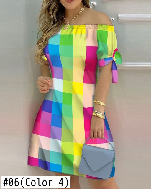 送料無料 女性オフショルダーミニドレス夏半袖蝶ネクタイストライププリントドレスセクシーなルーズ A ラインパーティードレス Vestidos ショート リボン ハーフスリーブ サマー 夏物 Aライン AE1212332233873716685
