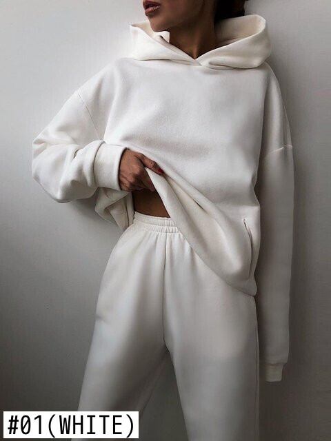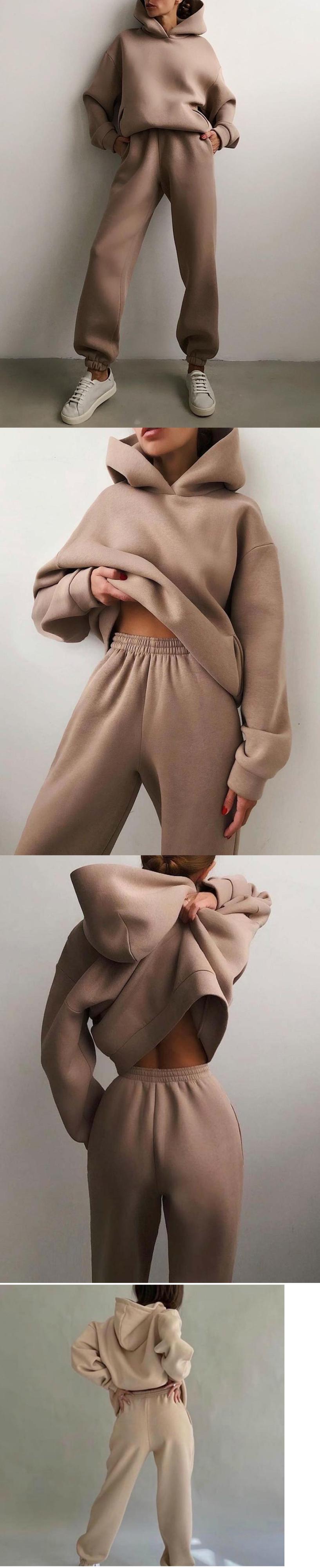 送料無料 女性トラックスーツ秋冬固体ルーズフード付きトレーナーツーピースセット特大スポーツジョガースーツパーカーパンツスーツ オータム 秋物 ウィンター 冬物 ソリッドカラー AE1212332221366565414